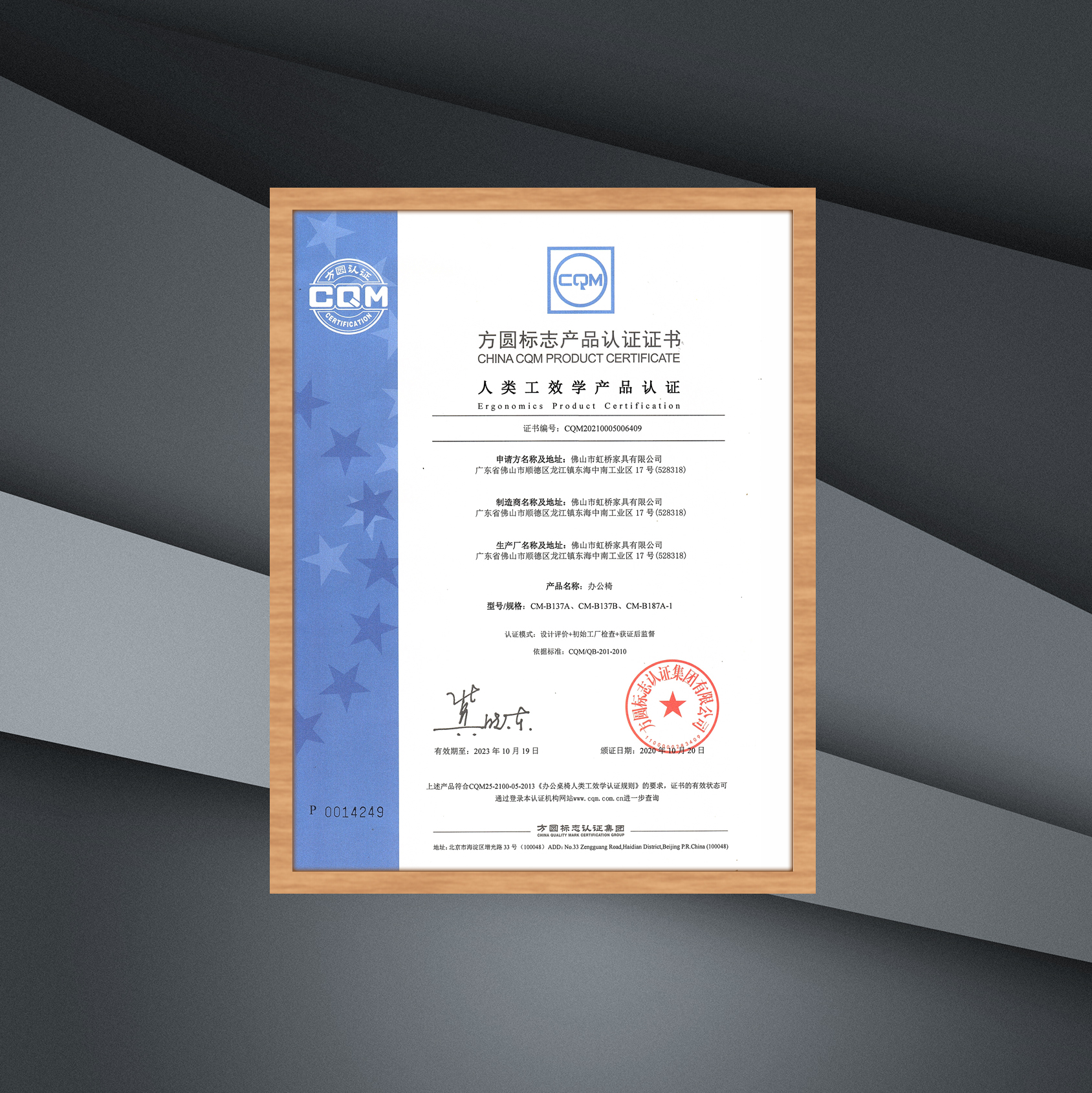 人類工效學產品認證證書-辦公椅(CM-B137A,CM-B137B,CM-B187A-1)