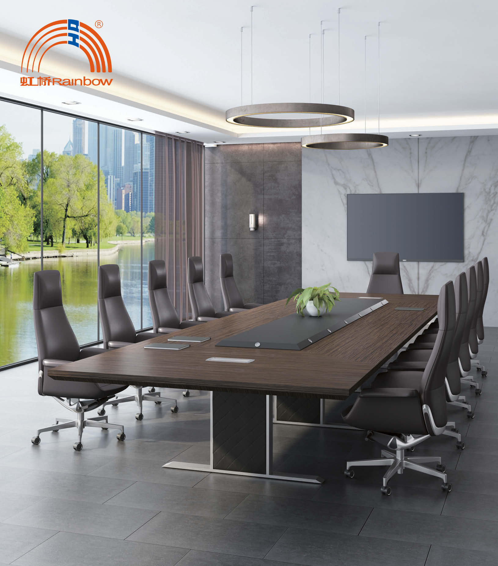 2、如今辦公家具市場上的板式會議桌是有著很多款式種類的,所以在挑選時我們要根據會議室的裝飾來進行挑選,一定要與會議室的裝飾風格一致,避免出現太突兀的情況,讓人看著就覺得不舒服,就會嚴重影響企業的形象了,所以為了能夠創造一個舒適的交談環境,一定要注意其搭配。